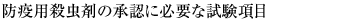 | 防疫用殺虫剤の承認に必要な試験項目 (医薬品製造指針に基づく) |